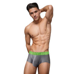 The Sexy Slinky Trunk from Envy Menswear offers a sleek and modern look with its unique metallic shimmering texture. Crafted in an elegant grey color this trunk is designed from a premium blend of nylon and spandex providing a smooth flexible and comfortable fit. The contrasting green waistband adds a pop of color featuring the Envy logo for a bold branded finish. This underwear is lightweight breathable and perfect for those who want to add a touch of luxury to their everyday essentials.