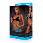 Show your submissive partner that you’re ready to take charge with an accessory by Whipsmart to let your imagination run wild with control. The glow in the dark leash and collar ensures that your slave stays in sight at all times and under your command.Demand pleasure and obedience from your faithful pet that you can lead around by the chain leash and glowing blue collar. A quick-release clip ensures comfort and safety as you play.