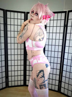 These pet play inspired Pink Puppy Dog Bones Lingerie Sets are made from 87% breathable polyester and 13% spandex, making them perfect for sporting events or raves! They're also very comfortable under garments at home.