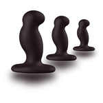 The Nexus Anal Starter kit comprises of 3 solid silicone butt plugs of different sizes designed for the user to start small and work their way up. Each is made from silky smooth silicone and anatomically shaped to fit comfortably for ultimate pleasure. Small is a great introduction or warm up to anal play whilst medium and large push you to further heights and can also be used for male prostate stimulation. These plugs have just the right amount of flexibility so you can be both stimulated and comfortable. Small Shaft length: 6cm (3.62 ins) Shaft circumference: 6.5cm (2.56ins) Medium Shaft length: 7.3cm (2.87ins) Shaft circumference: 8.8cm (3.46ins) Large Shaft length: 8cm (3.15ins) Shaft circumference: 10.3cm (4.05ins) Never use silicone lubricant with silicone toys Includes 1 year warranty.
