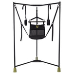 Sling play beats bed bangin’ ANY day. Go legs-up fully supported in pure BLISS. Launch this E-ticket ride with our FT Hammock Hangar. It all begins with the MOST stable Frame ever built. The FT Unibar vertical supports are SEAMLESS….a point of distinction from other sling frames. This one-piece construction delivers UNMATCHED stability. Our Interlock design at the top and bottom provides CORE resilient strength. Ride on a frame that is planted with 3 sure-footed BIG BOOT grips. Experience a rock steady ride…with ZERO distractions. Nestle into our revolutionary MESH hammock for max comfort. The open-weave design BREATHES for long-ridin’ comfort. You are supported with TWO ballistic nylon pillows. FT Hammock Hangar is equipped with infinitely adjustable nylon straps + stirrups. Unlike conventional chain supports these silent assisters deliver a clank-free ride. They adjust to the perfect position in seconds. With it’s unique tri-leg design Hammock Hangar works in the tightest of barracks. It nestles perfectly in corners and requires only 12.5 sq feet (1.2m2 sq meters) of space. It assembles in minutes with no tools required. The hammock and stirrups can be removed for machine washing. Go TACTICAL…add new tools to your Hammock Hangar. The Special Ops mirror adds visual eye candy for the sub. The Provision Pod keeps your lube and paper towels within arm’s reach. Attach our FT Gunner Fuck Machine with the matching mount and cruise SOLO.
