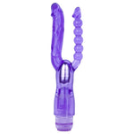 Extreme Dual Vibrator. This 10" vibrator has a penis shaped pussy pleaser and a beaded anal stimulator prong all mounted firmly on the powerful multi-speed vibrating base. Double up on pleasure and let this toy excel at satisfying you.(2AA)