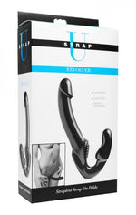 Strap U Revolver Strapless Strap On G-Spot DildoWith this strap-free strap on dildo there will be nothing between you and incredible partner penetration. No harness is required. The ergonomically curved bulb is designed to slip inside and be held in place by the PC muscles.Strap U Revolver Strapless Strap On G-Spot Dildo - The waterproof design is completely enclosed with a firm material and semi-realistic shape. There is a textured pad that is designed to stimulate the clitoris of the wearer as the specially angled tip provides direct G-spot sensation. Provides simultaneous pleasure for both partners with a svelte and elegant design.Measurements: 10 inches in total length shaft is 6 inches insertable handle end is 4 inches insertable 1.25 inches in diameterMaterial: TPRColor: Black